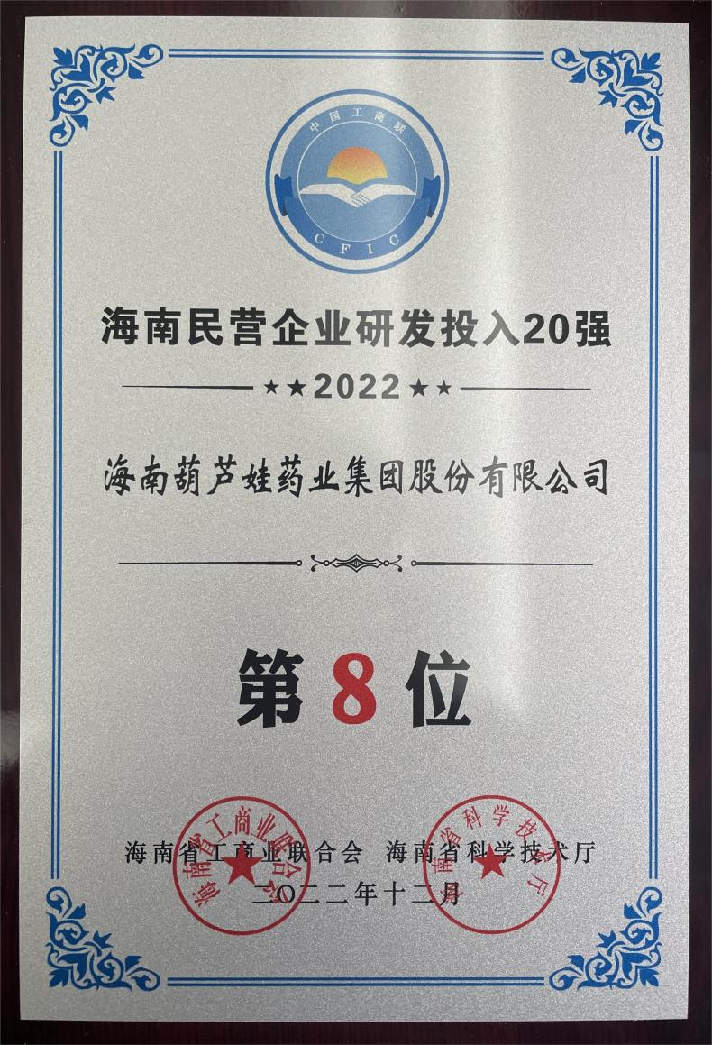 12月23日,2022海南民营企业50强和研发投入20强发布会在海口举行。会上发布了“2022海南民营企业50强”“2022海南民营企业研发投入20强”榜单和分析报告。Z6尊龙凯时药业再次荣登两榜,在海南民营企业50强榜单中位列第25位,较去年上升8位,这也是公司连续三年登榜;在海南民营企业研发投入20强中位列第8位,较去年上升7位。